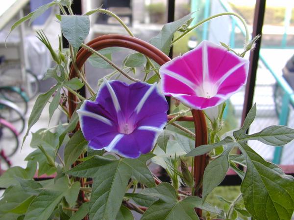 朝顔市の朝顔の鉢をいただきました。毎朝、咲いています。