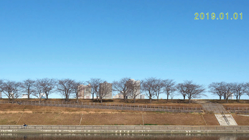 2019.01から2019.4の桜開花・満開〜新緑の移り変わり、そして2019.11の紅葉へ。