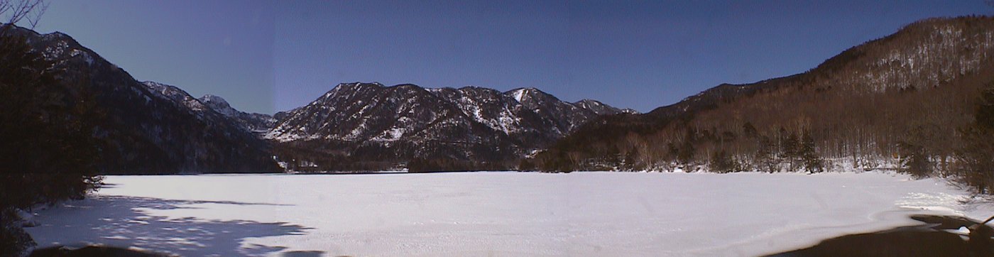 雪で覆われた湯の湖